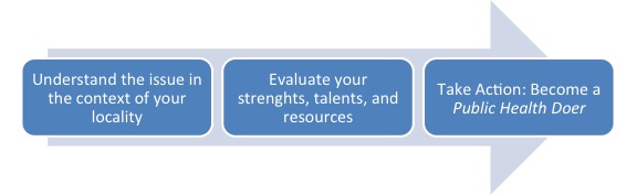 The above model is not a simple one. It requires at the very least a commitment to the cause, time, and resources; nonetheless, that is what we are being challenged to do when we want to be doers of Public Health.