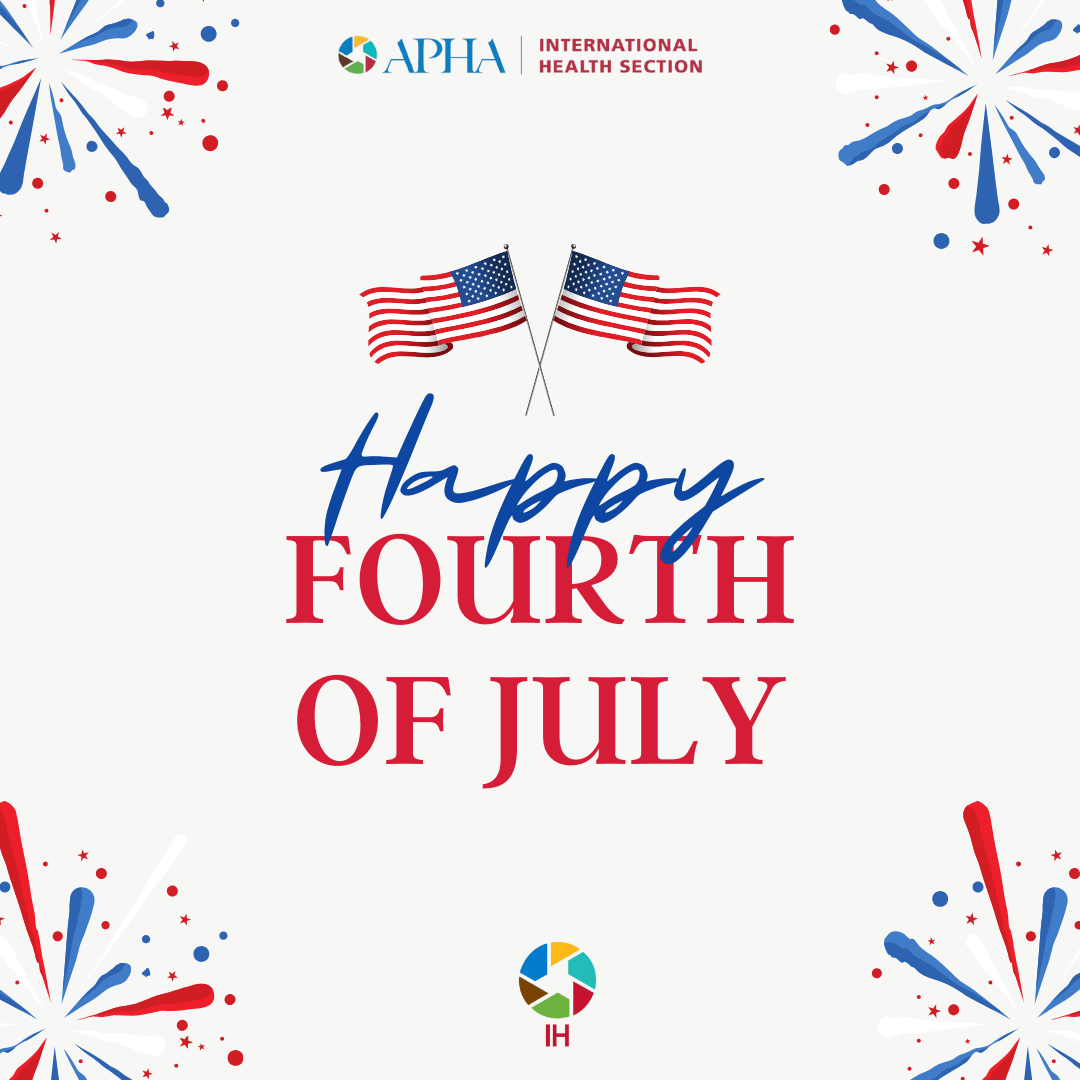 Happy Fourth of July July 4, 2024 by ihsection, posted in APHA IH Section Wishing you a healthy Independence Day celebration! #internationalhealth #APHA #july4th Share this:TweetMore Click to email a link to a friend (Opens in new window) Email Click to print (Opens in new window) Print Click to share on Reddit (Opens in new window) Reddit Like Loading...
